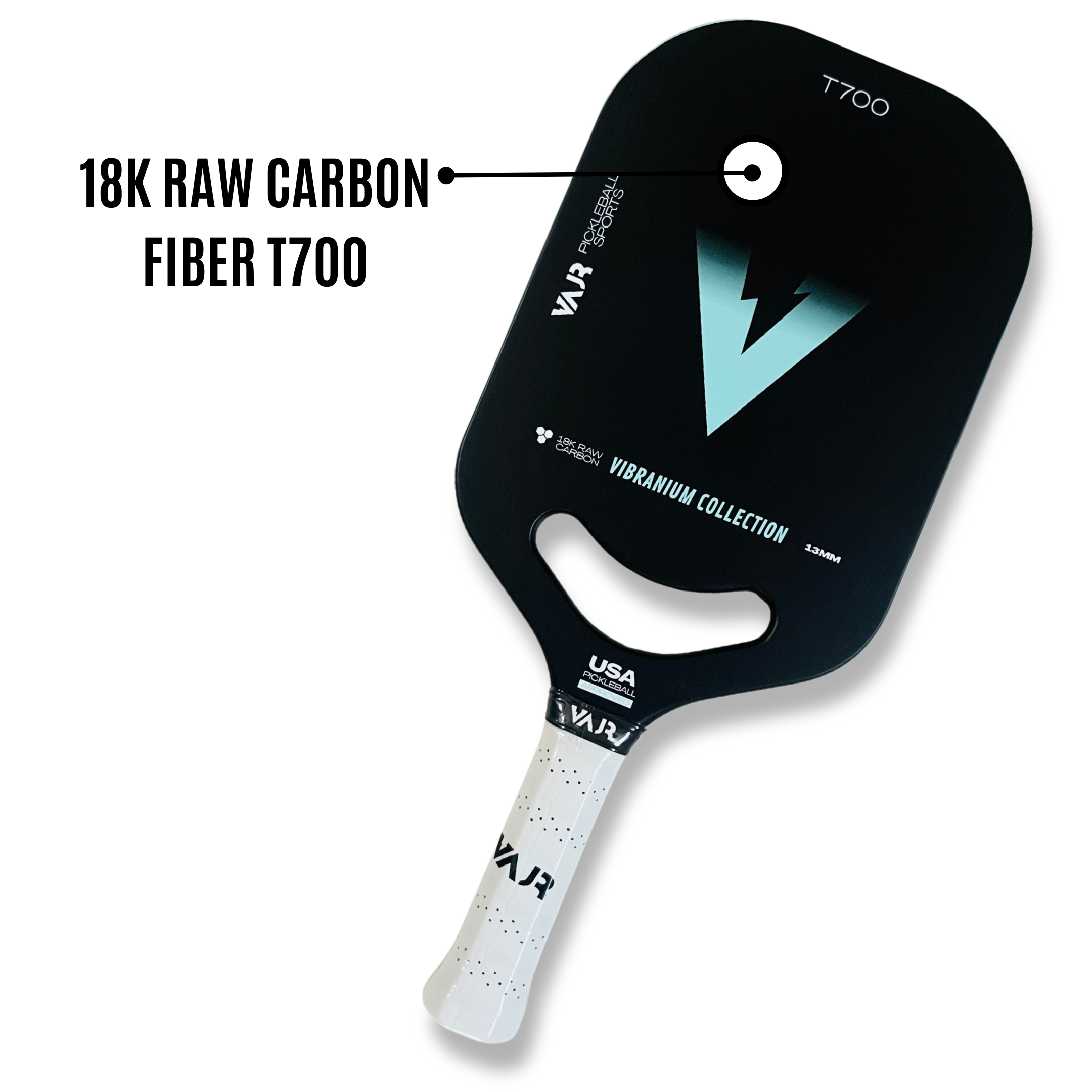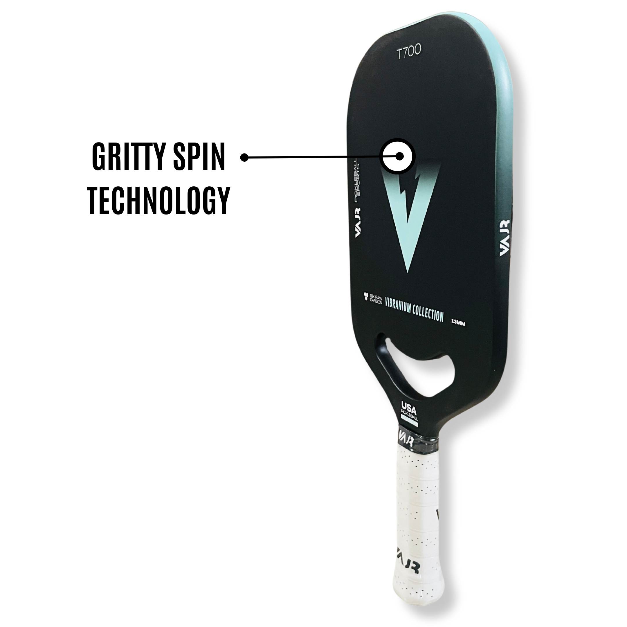 The VAJR Pickleball Paddle AR13 - V2 is designed for intermediate to pro-level players who demand precision and performance. Constructed from 18k Raw Carbon Fiber T700, it provides a durable and responsive feel, while the Gritty Spin Tech technology enhances spin and control on every shot. With a 13mm thickness, the paddle strikes a perfect balance between power and manoeuvrability. Lightweight yet sturdy, it ensures excellent handling, making it an ideal choice for players looking to elevate their game with superior control and spin capabilities.